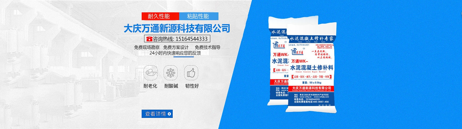 大慶萬通新源科技有限公司獨(dú)有的混凝土路面高強(qiáng)速補(bǔ)料,是水泥混凝土路面病害修復(fù)的好材料。疲勞、凍融循環(huán)、彎曲壓力、滲水和基層破壞等原因都會引起水泥路面的破損,從而帶來高昂的維護(hù)費(fèi)用。與以往的剛性修補(bǔ)方法不同,混凝土水泥路面維修速補(bǔ)膠提供了一種獨(dú)特的柔性修補(bǔ)產(chǎn)品和技術(shù),高柔性、高抗拉性,可跨伸縮縫施工和高抗壓性使得混凝土快補(bǔ)產(chǎn)品為水泥混凝土路面提供了******性的修補(bǔ)。傳統(tǒng)的剛性修補(bǔ)方案,如環(huán)氧砂漿和快干水泥產(chǎn)品,由于其自身的粘結(jié)失效,抗疲勞性低以及與原路面不同的伸縮系數(shù),修補(bǔ)面會在短時間內(nèi)失效或產(chǎn)生新的裂縫,需要反復(fù)修補(bǔ),有效期短且費(fèi)用高昂。大慶萬通新源科技有限公司的混凝土水泥路面維修速補(bǔ)膠可以隨原路面一起伸縮,移動,從而避免了粘結(jié)失效和產(chǎn)生新裂縫。萬通快補(bǔ)產(chǎn)品優(yōu)異的粘結(jié)性、柔韌性和高防滑性,特別適用于水泥路面的淺層粘合修補(bǔ),多邊角混凝土板層修補(bǔ),跨伸縮縫修補(bǔ)以及路面沉陷修補(bǔ)。萬通混凝土病害修補(bǔ)料針對混凝土起皮起沙、斷板裂縫、蜂窩麻面、坑槽露石子、漏筋掉皮、橋梁的掉皮漏筋快速通車使用時間長。應(yīng)用萬通快補(bǔ)產(chǎn)品,施工后一天就可以恢復(fù)交通。大慶萬通新源科技有限公司的萬通水泥路面維修速補(bǔ)膠適用于高速公路、機(jī)場路面、農(nóng)村村村通路面、廠坪、學(xué)校操場、市區(qū)公路、小區(qū)路面、橋梁、水泥路面的修補(bǔ)。使用萬通特快補(bǔ)材料修補(bǔ)路面可以一勞永逸! 水泥地面起砂怎么辦,混凝土修補(bǔ)劑混凝土地面起砂,混凝土地面修補(bǔ),地面起砂怎么辦,